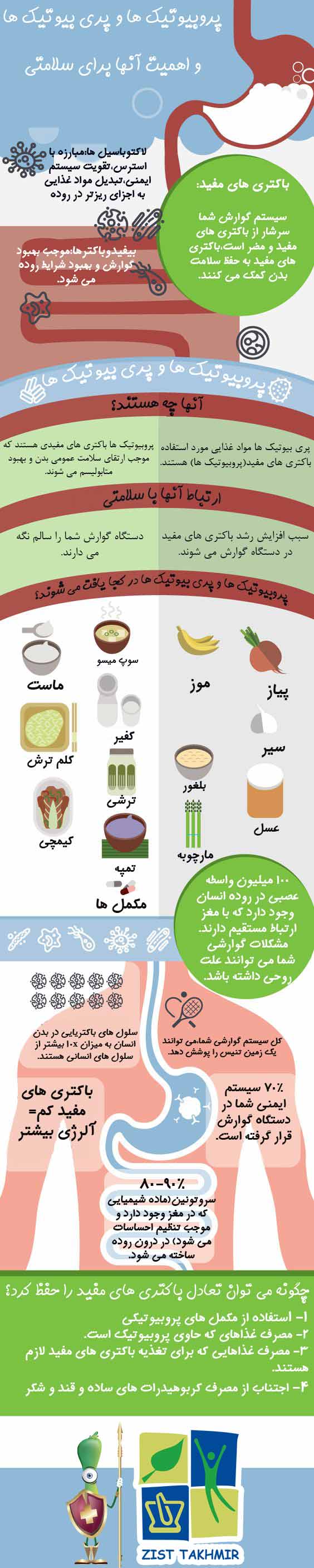 اینفوگرافی پروبیوتیک ها وپری بیوتیک ها